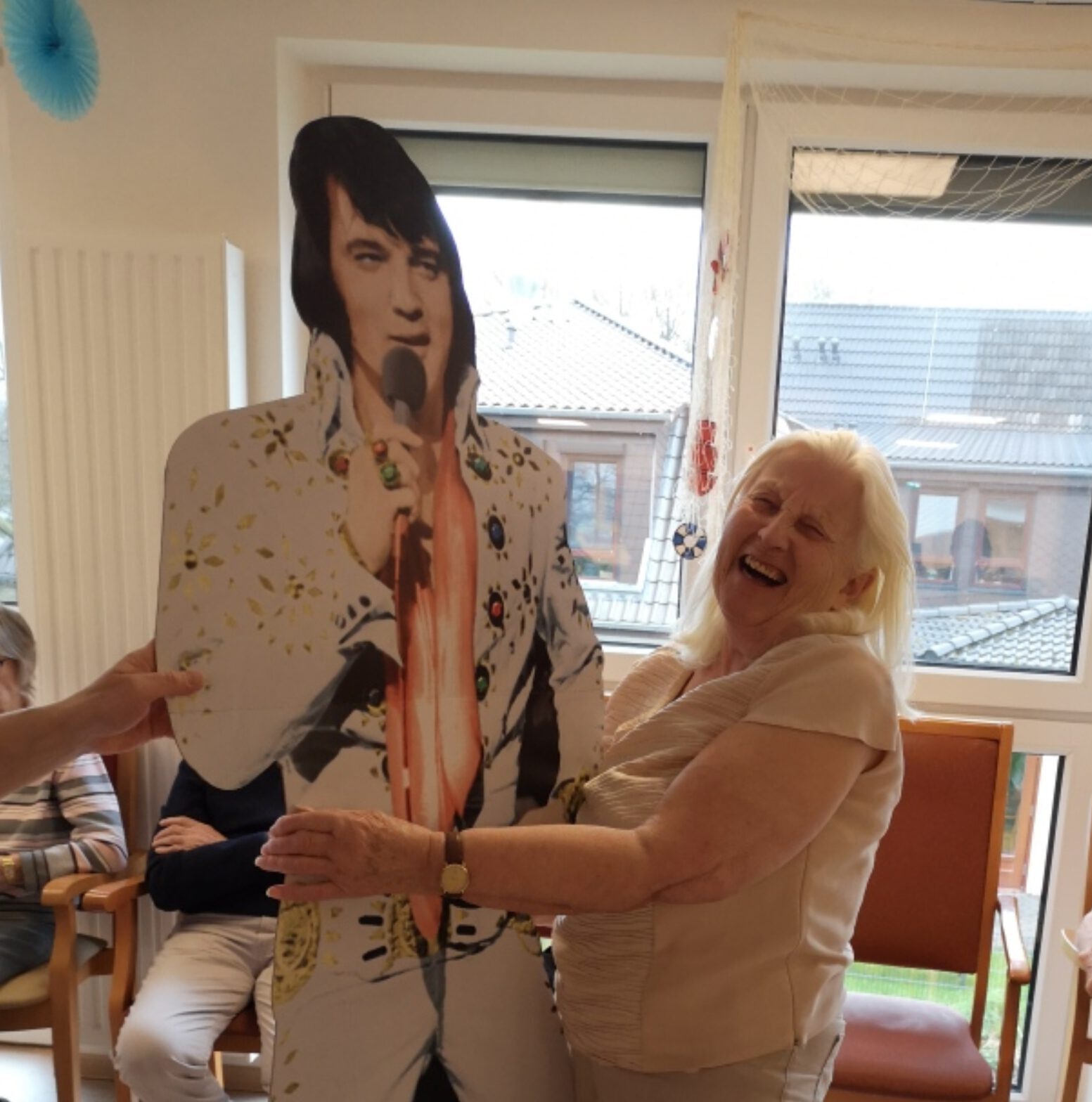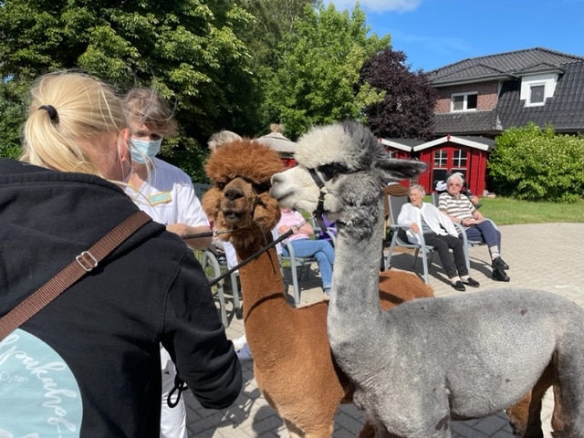 Die Bewohnerinnen und Bewohner versammelten sich bei herrlichem Sommerwetter im schönen Garten der Einrichtung für eine ganz besondere Überraschung.